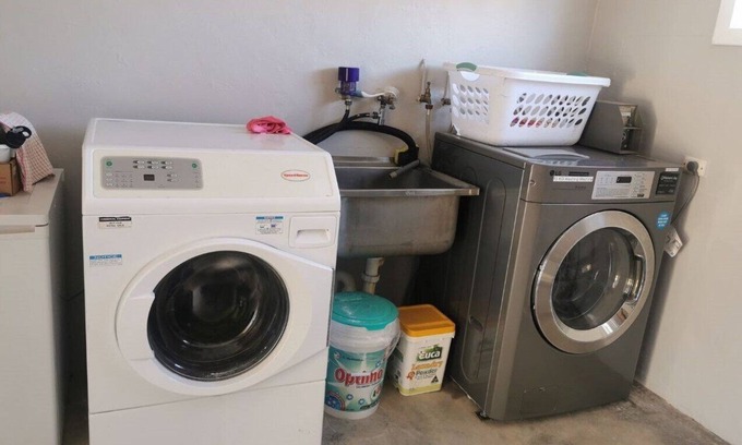 A separate laundry is at the end of the building available for permanent tenants and overnight guests. Clothesline set up.