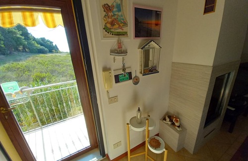 On July 1, 2016, we inaugurated this new HOLIDAY HOUSE located about one and a half miles from the center of Porto Recanati, on the hill overlooking the small town, about 1500 meters from the beach (also agreed) of Porto Recanati and from the motorway A14 of Loreto - Porto Recanati. The property (called "Casale al Mare 2") is located on the first floor of a semi-detached villa with a splendid view on both a cliff of Porto Recanati and the famous Basilica Sanctuary of Santa Casa di Loreto. It is composed of an apartment of about 75 sqm. (living room open with dining area and kitchenette, one double bedroom - with the possibility of adding a camping bed for 0-3 years -, a bedroom with 1 single bed - and the possibility to add another - two bathrooms - one with bath and the other with shower -, a balcony and a large terrace of about 25 square meters on the back) with independent entrance, garden with barbecue. In all indoor environments (except bathrooms) there is air conditioning and the rooms are reached by free wi-fi signal. The kitchen is equipped with a dishwasher, two furnaces (one combined ventilated and one microwave), a large refrigerator-freezer, lcd 45 "TV in living room and 21" in the master bedroom. It includes the supply of linens, towels, tablecloths and kitchen towels. The finishes are elegant and the furnishings are of high quality.