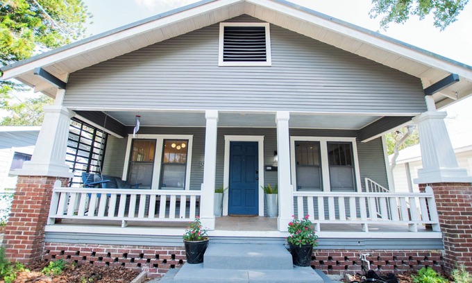 This stunning 2-bedoom, 2-bath (+office/bonus room) detached single family home in the sought-after Seminole Heights area has it all: Gourmet kitchen, 2 queen beds, smart TVs. high speed internet, off street parking, washer/dryer, open-air front porch, screened back porch, and your own private pool oasis in the backyard! Located just 1-mile from Zoo Tampa, 5-miles from Busch Gardens, 10-miles from Tampa International Airport, 45 min from the Gulf Beaches, & less than 90 min from Orlando.