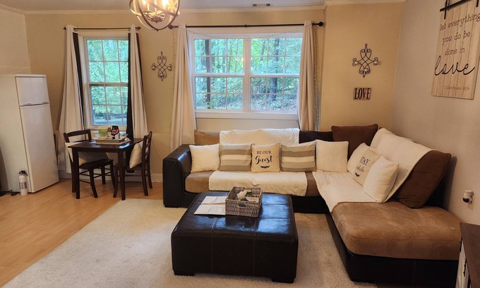 Relax in our charming ground-floor guest suite, tucked in a peaceful neighborhood just a 10-min stroll from historic downtown Senoia, GA.