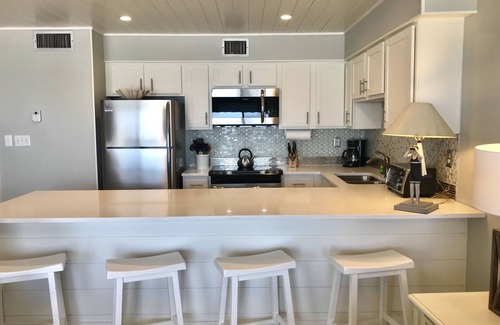 From the moment you arrive this 2nd floor unit, you’ll feel the warm “Welcome to the beach!" as you take in the amazing blue-green waters beyond a wall of sliding doors. The balcony beckons you to settle into one of two rocking chairs or tall bistro seating as you soak up sun, sand and sea.