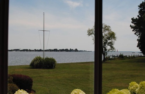 This lovely home offers a large main house and a private apartment over the attached garage. All linens, towels and pillows are provided. It has the best of both worlds on a private point of land that has open vistas and also a quiet creek to dock your boat. Deep water dock will accommodate a 52' yacht! Catch fresh fish and go crabbing, and two kayaks are available. The views are wide open and can be enjoyed from most (Website hidden by Airbnb) sparkling pool is adjacent to a large porch where you can watch the kids, have a crab feast, or just enjoy the expansive water views. Celebrate the end of a perfect day by viewing the sunsets.You may arrive by water, MLW depth is 4 1/2-6 feet/end of the dock. Will accommodate 40 ' sailboats.