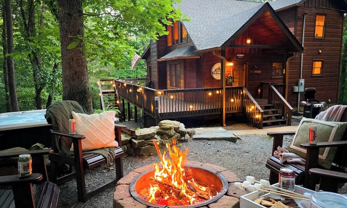 ~"What a beautiful home to relax and enjoy for a couple's getaway!!! We arrived with a warm welcome of a spotless cabin with tray of snacks to enjoy! We enjoyed the large screen TV's, the jacuzzi and fire pit in the evenings. The area has many apple orchards to visit in the fall, local restaurants and blue ridge train depot not too far away. Thanks, Gered, for the opportunity to stay and enjoy your cozy cabin!!" ~J