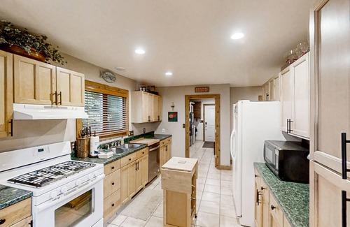 Outside, a firepit invites you to gather around for s'mores and storytelling under the starry night sky. Relax on the patio furniture with your morning coffee or enjoy a meal al fresco in the outdoor dining area. Explore the surrounding area and take in the sights of wildlife, go for scenic walks, or embark on photography adventures capturing the beauty of the landscape.