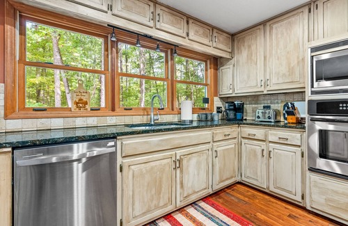 The open concept living space allows you to easily transition from one activity to another. Brew a fresh cup of coffee and enjoy from the comfort of the plush couch as you catch up with some screen time. Better yet, step outside and enjoy your first sip from either of the expansive deck space, with the sounds of nature surrounding West Point Lake.