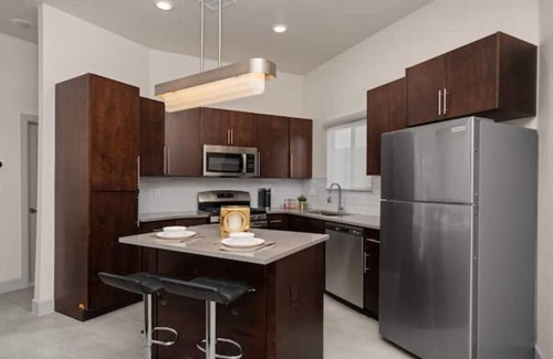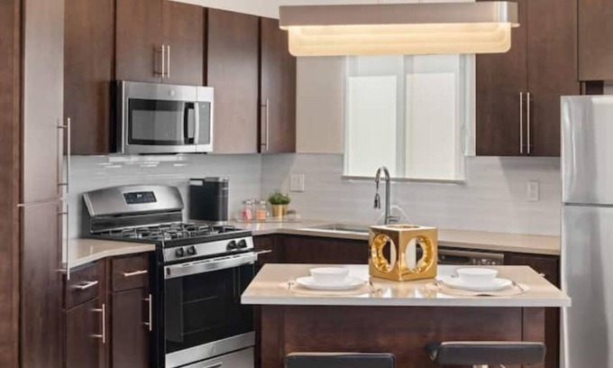 Grab a book, pour yourself a delicious cup of joe, and unwind in your dedicated backyard seating area. In the kitchen, you'll find all the cooking essentials you’ll need to cook a meal fit for a Sultan! Your private chef's kitchen has quartz countertops, stainless steel appliances, storage containers, a blender, a toaster, high-quality pots, pans, and more. Not to mention non-stick cookie sheets! (Because nothing makes you feel more at home than freshly baked chocolate chip deliciousness)