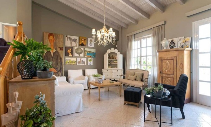 Stay at a dreamy villa with artistic finishes, just 800m from the beach.