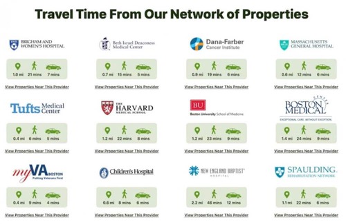 Boston is one of the most walkable cities, and this location really ideal in that its pretty much in the middle of everything. As a provider of short-term medical stays for patients and longer term stays for travel nurses, the location couldn't be more accessible to our top hospitals.