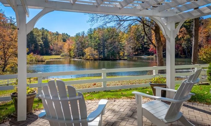 Peacefulness and relaxation surrounds you from a large covered porch with abundant seating, resting under the Arbor while watching the fish jump or enjoying a beautiful sunset from the delightful screened porch. Private driveway, parking and entrance welcomes you to your dream vacation.