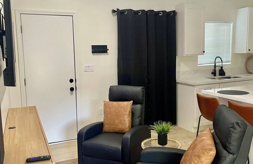 Relax in picturesque Bakersfield in this cozy retreat features 1 queen bed, 1 restroom with resort style shower, and essential amenities like a fully stocked kitchen, washing machine in unit, heating, AC, and WiFi. Whether you're traveling solo or with a companion, this enjoyable space offers everything you need for a pleasant stay. You're sure to make fantastic memories with a stay at our place!