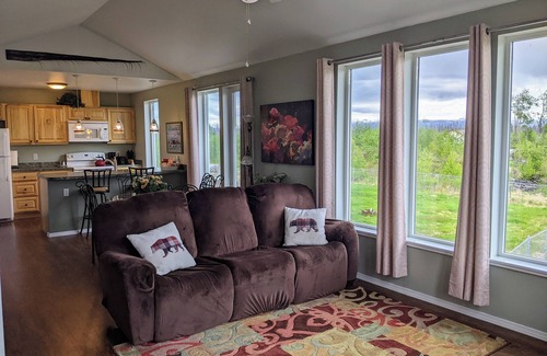Serenity Heights Place offers a relaxing space to unwind and enjoy nature in beautiful Willow Alaska. We offer a 750sf open concept apartment which is modern, airy, and extremely clean above our detached garage. It is secluded but close to the main Parks Highway. Walls of windows provide spectacular sunrise, sunset or star viewing. On a clear night, look for the Aurora Borealis, our famed Northern Lights. We have a large parking area for a boat or trailer and live in the main house year around.