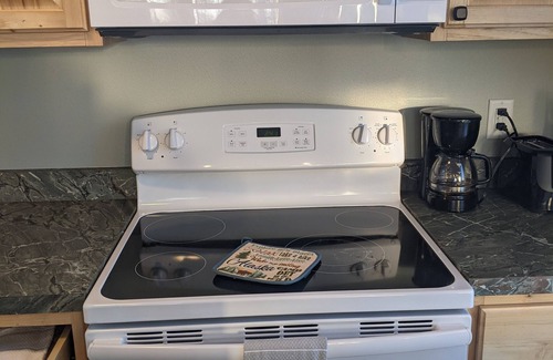 We offer many of the amenities of home such as a full sized fully equipped kitchen, a workspace with WIFI and office chair, all linens for kitchen, bath, and bedroom, plenty of pillows and blankets, and some games and puzzles when you need to relax after a day of adventure. In addition, we provide dish soap, dishwasher tablets, liquid hand soap, shampoo, conditioner, and body wash for your stay. The bedroom offers a queen bed and walk in closet, and twin bunkbeds in the living area provide added sleeping space, all with new mattress. The main living area has plenty of seating with a dining table, bar, and a comfortable double recliner sofa for watching TV or gazing out the huge windows.