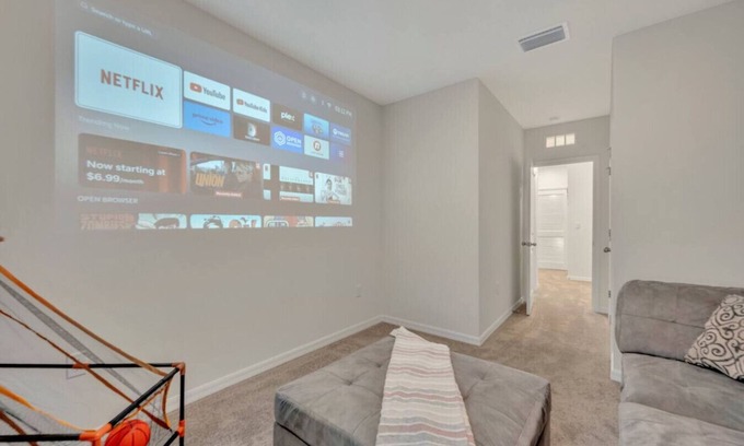 - 2nd Bedroom: Converted into a theater room with games, comfy sofa, and an adjacent full bathroom.