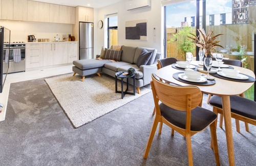 Enjoy a stylish experience at this centrally located place. 2-bedroom, 2-bathroom property in the heart of Christchurch CBD. Enjoy open-plan living, two cozy bedrooms and pristine bathrooms. This central location offers the convenience of exploring Margaret Mahy Playground, boutique shops, cafes, bars on New Regent Street, and tranquil Avon River walks. Your CBD adventure begins here with full kitchen facilities enjoy meals at home with your champions or enjoy a short stroll to eateries.