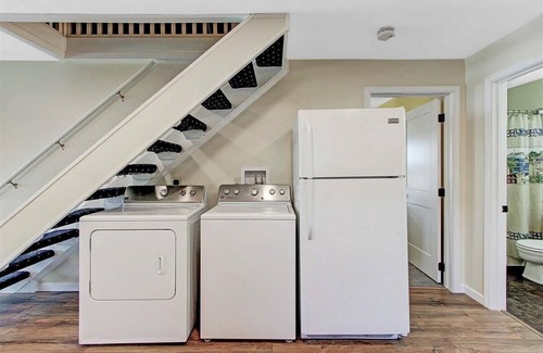 You will enjoy a spacious back yard/ patio area, with swim ladder and a 24' Boat dock with ample parking and swimming area. You can dine lakeside with a comfortable patio dining table seating 6, and an umbrella to block the afternoon sun. Additionally there is corn hole game in the storage shed and ample outdoor patio furniture. Also included is a portable fire ring with firewood provided to enjoy the twilight hours.