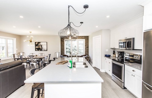 Our super nice and cute house is fully renovated with brand new hardwood floors, an open concept kitchen, island, dining area and a rear deck for bbq and a glass of wine. The master bedroom is my favorite and you will love the morning or evening sitting area. Reviews commented on how great it is, the location and super clean. We are committed to quality. We have great reviews and are committed to your A++ stay.