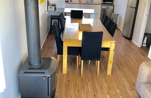 A fully equipped kitchen with dishwasher. The upstairs bedrooms each have queen size beds with good quality cotton sheets and doonas. Downstairs bedroom a has a double bed and a set of bunks - sleeping 8 people comfortably. All beds have electric blankets.