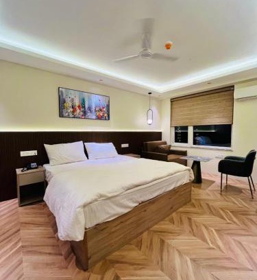 Serenity Suites is located in Greater Noida, just 23 miles from Tughlaqabad Fort and 23 miles from Humayun's Tomb. The air-conditioned accommodation is 22 miles from Swaminarayan Akshardham. National Gandhi Museum is 25 miles away and Feroz Shah Kotla Cricket Stadium is 25 miles from the condo hotel. With free Wifi, this 1-bedroom condo hotel offers a flat-screen TV and a kitchen with a microwave and fridge. India Gate is 25 miles from the condo hotel, while Pragati Maidan is 25 miles away. Hindon Airport is 22 miles from the property.