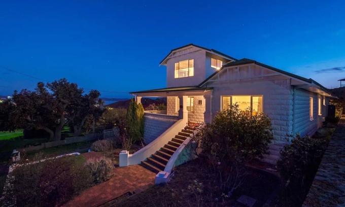 Stunning holiday house with views over town and Princess Royal Harbour. 2 mins walk from the city center and the Albany Visitors Center. Walk to restaurants and tourist attractions. We have 3 Queen rooms, 1 with a private ensuite. All rooms are tastefully appointed with lovely furnishings. We have a bunk room for the kids that sleeps 6 with their own adjoining lounge room. There are 3 lounge rooms and 3 balcony's on the property. The kitchen is fully equipped and all linen / towels provided