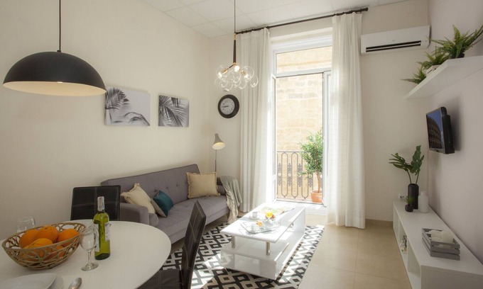 Very well located 60m² cozy apartment. It has a small balcony that will make this space a much brighter and more comfortable place, since you can enjoy it throughout the year. It has a modern décor contrasting the light tones of the walls with the dark ones of the comfortable furniture. It has a bedroom with double bed, fully equipped kitchen and one bathroom with shower.
