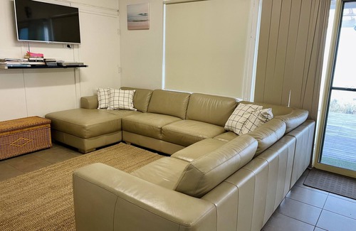 This gorgeous beach house offers a great open plan kitchen, meals and living area with TV as well as queen bedroom, bunk room with ensuite (also with a TV/DVD) and all your core amenities under the one roof. While the main house can sleep up to 7 people, the hidden gem of this property has to be the second living space just steps from the back door!