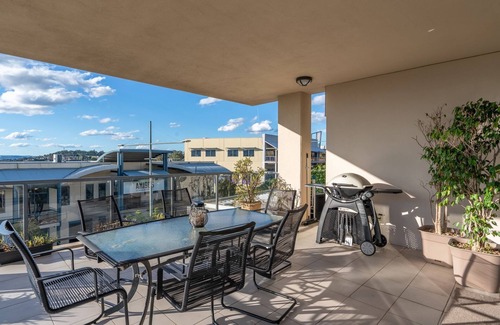 Massive two level penthouse centrally located in Shellharbour CBD. Across the road from Events Cinema and Shellharbour Central Hotel. A block from Shellharbour Square and a multitude of restaurants, shopping, services and public transport. Upstairs is one King bedroom, one Queen bedroom, bathroom, separate toilet and enormous deck with lake and escarpment views. Downstairs is a large open plan living and entertaining area with a second large deck, toilet and laundry. Equally stunning views. A fold out lounge is available on the ground level. The penthouse is accessed via a secure lift. Air conditioned throughout.