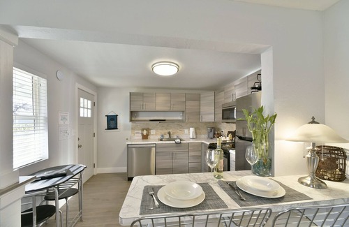 Spacious modern cottage right in downtown area of Mt Shasta. Large well equiped kitchen, Sunny and clean, deck with BBQ, grassy area. Parking next to cottage. Luxury touches, heated towel bar. 42"smartv. Strong wi-fi. Tempur-pedic mattress. Futon sofa for additional guests. ( best suited for 1 adult or children. )ALL NEW. Enjoy Morning coffee or meals on your personal deck. Walk to crystal shops, restaurants and night life. Enjoy the farmers market during the summer and Sisson meadows for the best mountain views. Laundry on site. Gourmet supermarket across street. Downtown shops and restaurants one block away.