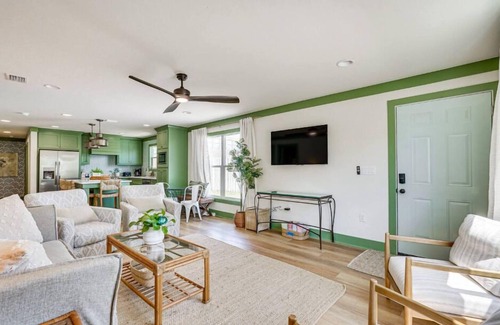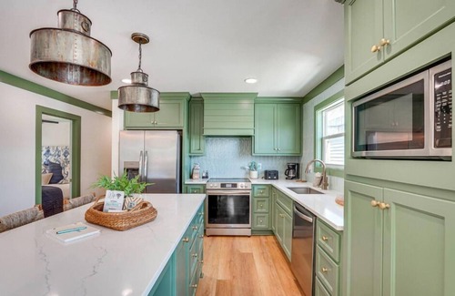 Inside, the bright and airy interior features stylish coastal décor, abundant natural light, and an open-concept layout that makes gathering easy. The fully stocked kitchen comes equipped with stainless steel appliances, generous counter space, and all the essentials needed to prepare meals and snacks with ease.