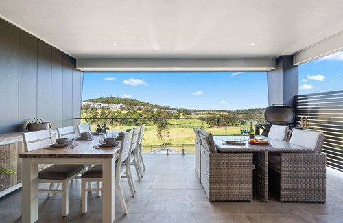 The open-plan living area is bathed in natural light. With the inside/ outside living space and large open doors to the private balcony, seamlessly connecting to a large covered balcony with BBQ. Enjoy alfresco dining or relaxing in the outdoor lounge area offering sweeping 180 degree views of the renowned Links Golf Course. This is the perfect spot to enjoy your morning coffee from the Nespresso machine, lunch, BBQ with friends or family or a quiet evening with the stunning landscape as your backdrop.