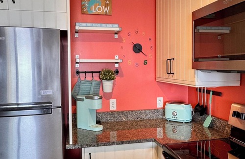 TVs have streaming channels provided or you can sign into your own. WiFi. Brand new kitchen with all of the cookware, place settings and utensils you need. Stacked washer & dryer in the unit. Jacuzzi in the master bedroom. Storage closet for your beach items at ground level.