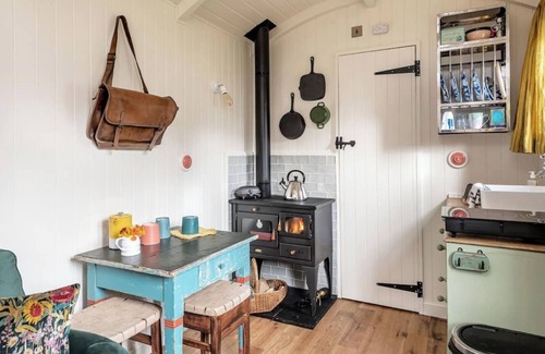Shepherd's Hut with wood fired hot tub near Bath is located in Wingfield. Shepherd's Hut with wood fired hot tub near Bath provides accommodation, featuring Hot Tub, Kitchen, Parking, among other amenities. This House features Hot Tub, Kitchen, Parking, to make your stay a comfortable one.