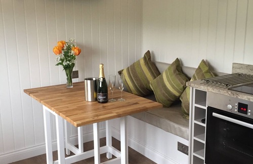 Shepherds View supports robust eco-friendly principles with stylish quality accommodation. Sleeping up to six guests in three bedrooms which are spread out across two adjacent shepherds lodges separated only by a raised decking area/patio, this welcoming holiday retreat provides guests with everything needed to relax and unwind. It is set within its own private garden, where you will find the salt water hot tub and quality garden furniture along with a charcoal bar-b-que plus much more. There is also a kadia fire bowl to ensure you enjoy your evenings in. Supplies can be purchased from honesty stall.