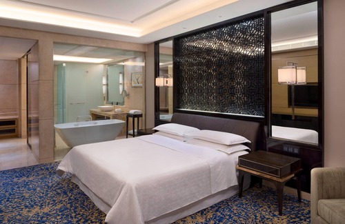 Sheraton Changchun Jingyuetan Hotel offers 345 accommodations with iPod docking stations and DVD players. Accommodations offer separate sitting areas. Beds feature down comforters and premium bedding. 42-inch LCD televisions come with satellite channels. Guests can make use of the in-room refrigerators and minibars (stocked with some free items). Bathrooms include separate bathtubs and showers with deep soaking bathtubs and rainfall showerheads. Bathrooms are also outfitted with bathrobes, slippers, and hair dryers.