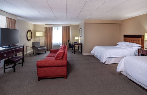 Sheraton Framingham Hotel & Conference Center offers 200 accommodations with safes and complimentary newspapers. Beds feature premium bedding. Televisions come with premium cable channels and pay movies. Bathrooms include shower/tub combinations, complimentary toiletries, and hair dryers.