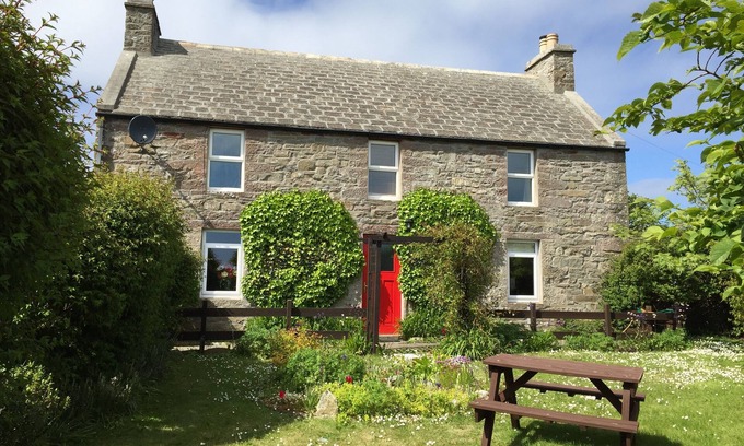 Traditional 2 bedroom stone cottage in small village 3 miles from ferry terminal of St Margaret's Hope. Downstairs accommodation compromises large kitchen/diner, lounge with log burning stove, family bathroom and large room for storing wet outdoor clothes/boots etc. Upstairs has large king size bedroom with ensuite shower room and a twin room with dressing room off. Parking for one car on driveway and plenty additional parking on street outside. Very large enclosed garden. Village has a hotel with bar/restaurant serving meals, a tearoom and a public bus stop to St Margaret's Hope (3 miles), Kirkwall (10 miles) and Stromness (26 miles) all within 5 minutes walk. Tourist attractions nearby include the Fossil heritage centre, Italian Chapel, Churchill Barriers, Hoxa Tapestry Gallery, and numerous beautiful beaches and walks.