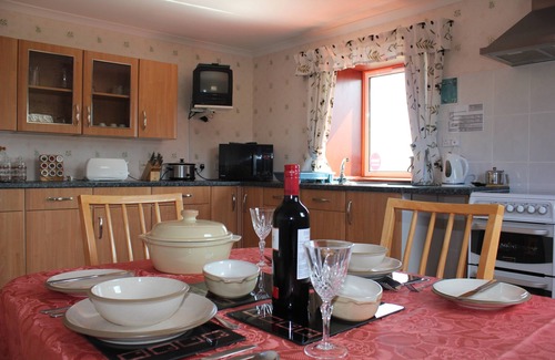 The Kitchen is fully equipped with fitted units. An oil fired combination boiler supplies domestic water and central heating. Additionally, we provide an Electric Ceramic Cooker with fan assisted oven, Dishwasher, Microwave Oven, Refridgerator and Colour TV/VCR unit with Free-sat.