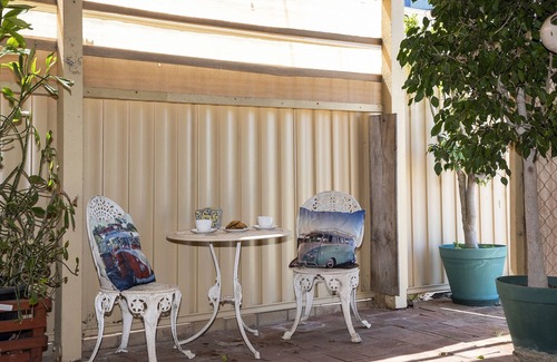 Outside also includes an enclosed BBQ area which leads out onto the fully enclosed backyard. Perfect area to throw down a rug and relax.