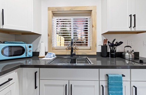 Tucked into a peaceful, creekside community, Shoreline Village welcomes you the moment you arrive. As you drive in, you’ll feel the world slow down—tall trees lining the road, and a cluster of cozy cabins, each with its own private spa and modern charm. Cabin 5 - located in the center of the village - greets you with modern design, a smart split floorplan perfect for traveling with friends, and all the thoughtful touches you need to unwind. Pets welcome with pet fee.