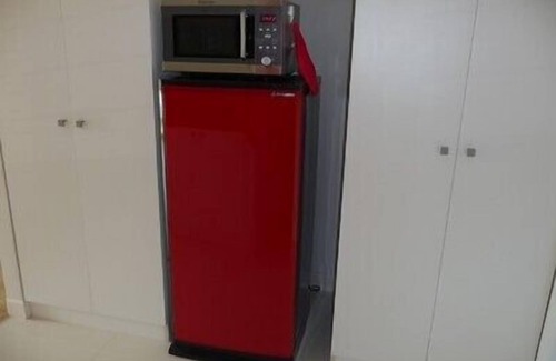 The kitchen area is equipped with one hotplate, rice cooker, coffee maker, kettle, toaster, microwave oven and fridge with freezer compartment. Crockery, glassware, cutlery and pots and pans are available to cook and eat a small meal. Kitchen linen, coffee, creamer and sugar is provided for free. The bathroom has a shower cabin, a toilet and a wash basin with ample space for your toiletries. Hand soap, soap, toilet paper, big size towels, bathrobes and hair drier are available.