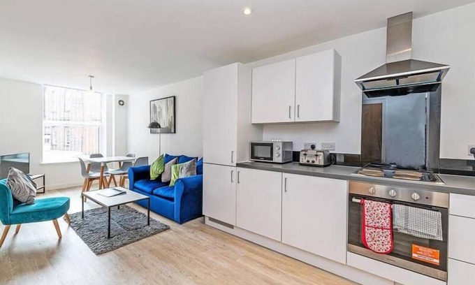 This stylish apartment in Preston’s town centre is part of a converted office building. Perfect Short Term Apartment Preston With Parking. It offers stylish living in the heart of England’s northwest. Excellent transport links are available by road and rail in all directions.