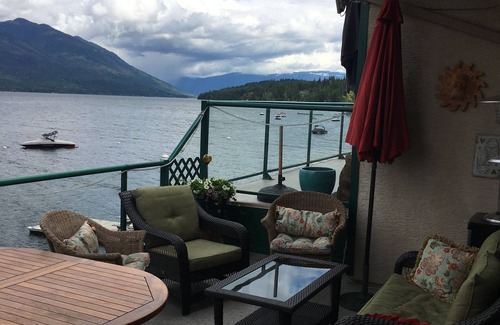 1400 sq ft, 2 story, 2 bedroom condominium on Shuswap Lake in beautiful British Columbia Canada. King bed and ensuite in master with steam room, two Queen beds with full ensuite and Internet TV in second bedroom. Full kitchen with new stainless appliances, laundry, barbecue, internet, satellite television, mooring ball for your boat right in front, and truly the best deck on the lake, directly over the water.