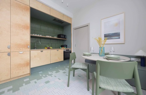 Throughout the apartment, care has been taken to create a cohesive, stylish decor with attention to detail, which fosters a pleasant atmosphere. The thoughtful layout, modern design, and full range of amenities make this the ideal place for a stay in the capital.