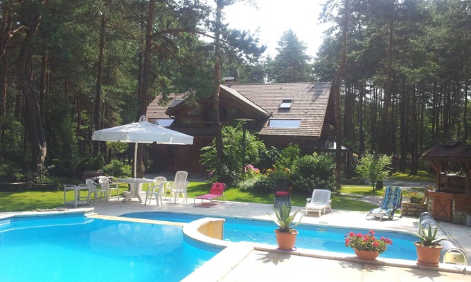 Siewierz: Traditional wooden dacha, private pool, possibility of sleeping 10 has 4 Bedrooms , 3 Bathrooms, and max occupancy of 10 people. The minimum rental for this property is 1 nights, but this can change depending on the season you plan on staying. Previous guests have given good rated it, and VRBO labeled it a top-rated House because of the excellent services rendered by the owner or manager of this House, and has consistently provided great experiences for their guests. Most families or guests that use it recommend it to their friends and some of them are repeat guests. House has a friendly neighborhood, and the Siewierz has interesting places to visit. If you want to learn more about the House in Siewierz, such as places to visit and things to do nearby, you can check below to learn more.