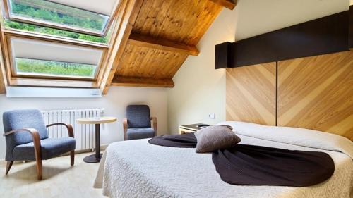 This characteristic, mountain-style hotel is located in the Ordesa Valley, surrounded by the impressive landscape of the Pyrennes. It offers a seasonal outdoor pool, spa and free WiFi. The spa at Hotel Silken Ordesa includes a sauna, hot tub and Turkish bath. A range of health and beauty treatments are also available. The rooms feature a simple design and come with a flat-screen TV. They also include a private bathroom with a hairdryer. Hotel Silken Ordesa offers a traditional restaurant, serving homemade dishes characteristic of the region. The lounge area has a fireplace and there is a bar area. Torla is approximately 0.6 mi from the hotel while Ordesa National Park is just 1640 feet away. Guests can enjoy a number of activities in the area such as hiking, fishing and adventure sports. The swimming pool is shared with the camping guests.