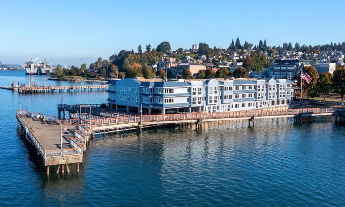 Located on the shores of Commencement Bay, this hotel offers waterfront lodging in Tacoma. All rooms feature views of the bay and free Wi-Fi. Large windows and a 55-inch plasma TV are provided in each bright room of the Silver Cloud Inn-Tacoma Waterfront. A microwave, refrigerator and coffee maker are included. Guests can look out over the bay from the piers that surround the Silver Cloud. A fitness room, business center and local shuttle service are also provided. Picnic areas are also available for guests to eat next to the water. The Museum of Glass is less than 3 miles from the Silver Cloud - Tacoma Waterfront. Point Defiance Park is just 7 minutes' drive away.