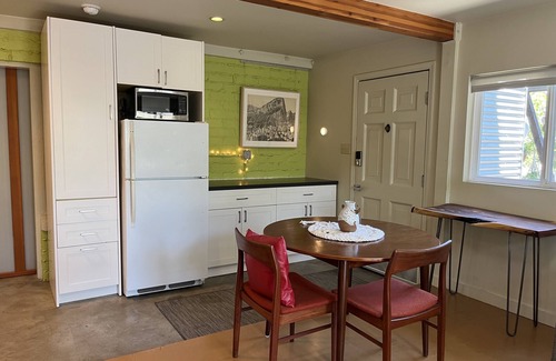 Secluded hillside sanctuary with private deck, polished concrete & wood floors, granite kitchen countertops and artisanal flourishes. Private entrance directly off one of Silver Lake’s historic staircases. Walk to Silver Lake’s famed Sunset Junction, or kick back in the hot tub and soak up the skyline views. Perfect home for extended stays. Ideal for adventurous solo travelers, couples & business visitors