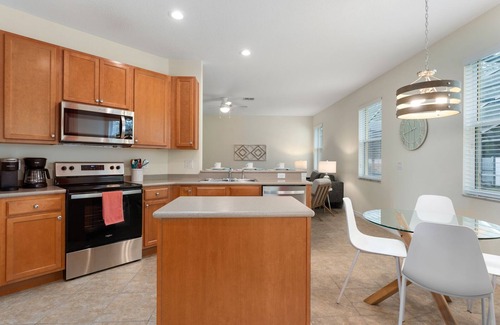 Modern, spacious and comfortable rooms welcome you as you walk into this gorgeous updated 4 bedroom, 2,800 sq. ft. house. Enjoy the open feel the corner lot offers. A perfect getaway for families and friends near Disney only 5 miles away!