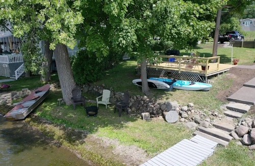 Cozy 4 bedroom ranch right on the lake. Great views and close to everything. Enjoy a getaway in a place where everyone of all ages will experience. Newly landscaped property, kayaks and fireplace to use for your own. A couple of boats docked there and owners may use time to time. Also owner has a pontoon boat you can rent if interested!( $350 2 days or more) $400 if one day.Stop by the Shoreless Acres to get everything from food to drinks and firewood. Let us know if you have any questions at anytime!