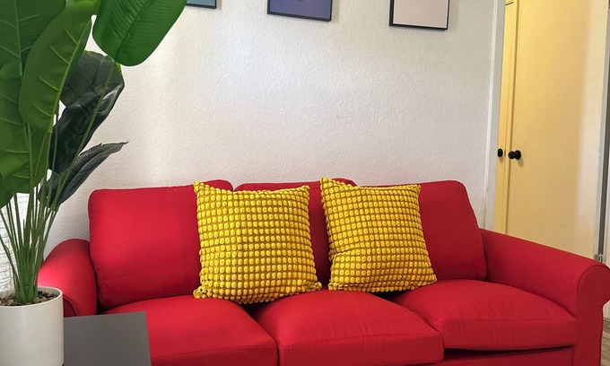 Cozy and modern 2 bedroom, 1 bathroom apartment in the heart of the city, perfect for families. Bright, spacious rooms with comfortable furnishings and a fully equipped kitchen. Enjoy a relaxing time in the living room while you watch your favorite shows on the 65" smart TV.