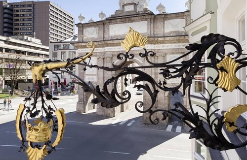 Family-run hotel, centrally located in historic Palais at the Triumphal Arch, opposite the Casino. The hotel has 36 rooms with shower, toilet, satellite TV, telephone and soundproof windows. Family room available. In the immediate vicinity there are numerous restaurants and cafes. Many sights within a few minutes. Ski bus stop opposite the hotel. Family-run hotel, centrally located in historic Palais at the Triumphal Arch, opposite the Casino. The hotel has 36 rooms with shower, toilet, satellite TV, telephone and soundproof windows. Family room available. There are many restaurants and cafes in the immediate area. Many sights within a few minutes.